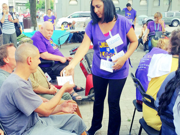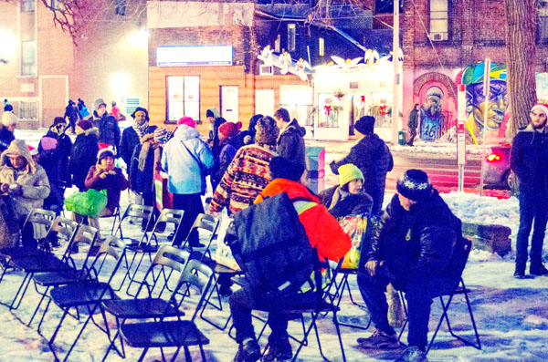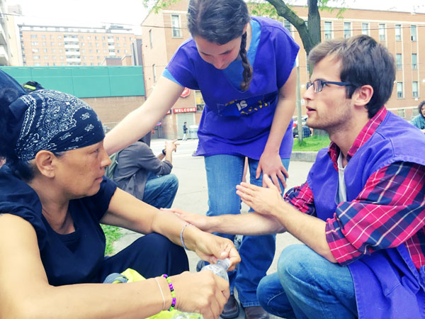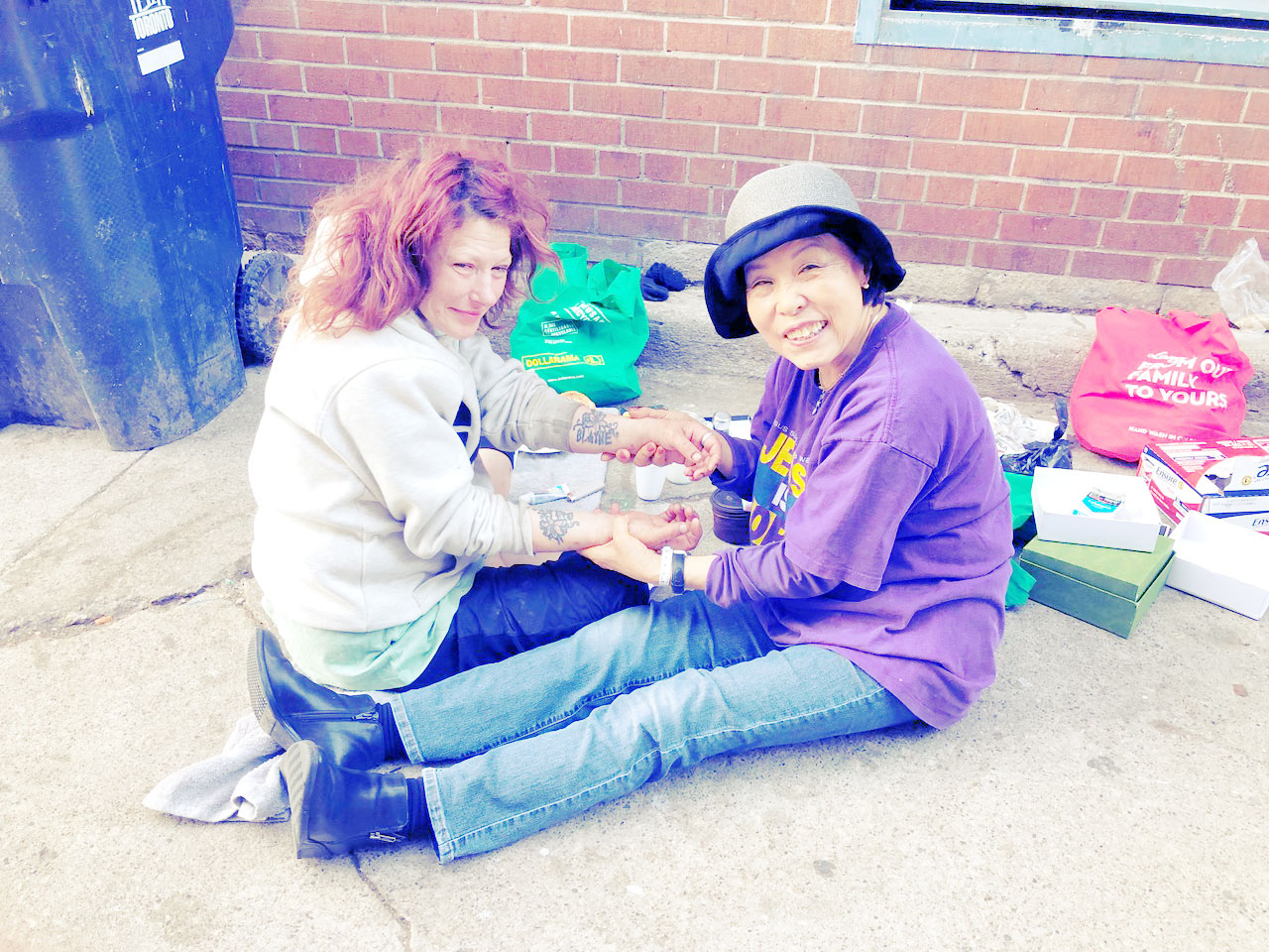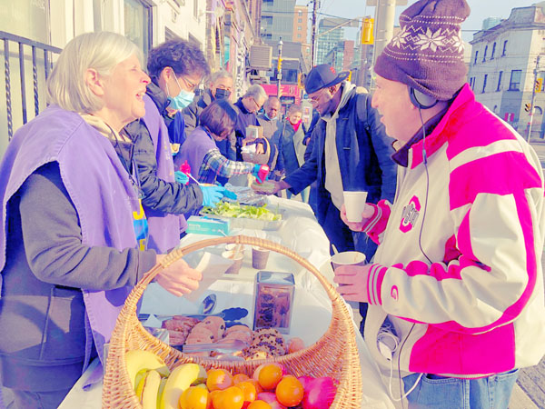During the warm months we gather outside with banners and voices raised for this neighbourhood. A worship team leads in songs of praise, skits and relevant messages. Moss Park with tall trees directly across the street from the mission and fronting the busy Queen and Sherbourne, is the location God chose for this outdoor table of His delight – the foundation of this ministry. (Recently The City of Toronto started construction for a new subway line, so right now we serve the seasonal food along the sidewalk in front of the church.) This outreach is orchestrated by many different teams from various churches as they hear Jesus’ call to come to serve the food and reach the lost, and minister to them individually. In the winter this outreach continues but we call the people to come inside.